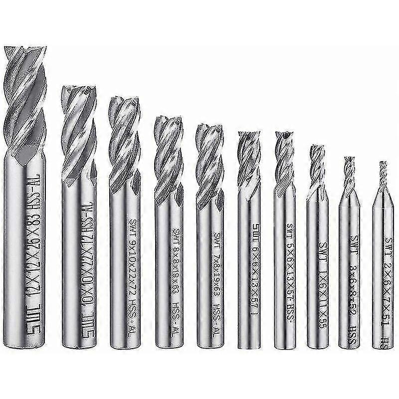 10pcs 4 Flute Drill Bit Set 0.2-1.2cm Hss Cnc Straight Shank Drill Bit Set For Drilling Tool Set For Wood Aluminum Steel Titanium