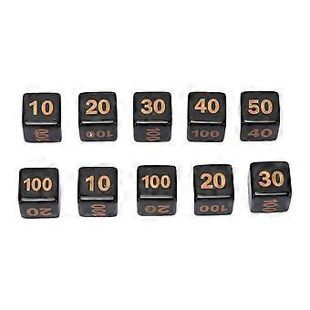 10Pcs Dice Set Plastic Right Angle 6 Sided Numbers Dice for Game Desktop Education Black
