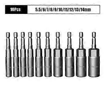 10Pcs Length Deepen Impact Socket Adapter 5.5-14mm Power Nut Driver Socket Set 1/4-inch Screwdriver Key Head Hand Tool Set~00445