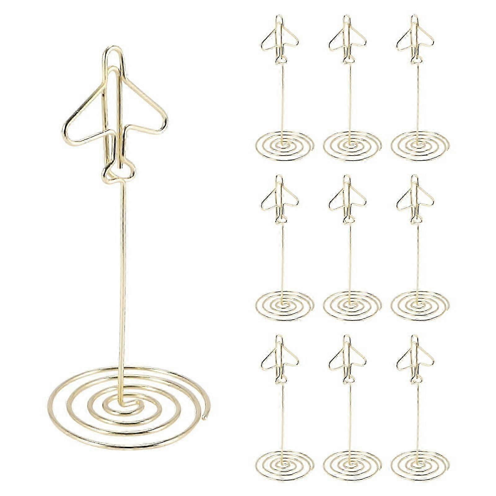 10Pcs Memo Clip Holder, Table Number Name Card Holder Desktop Metal Business Photo Gold Plane Frame with Base