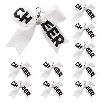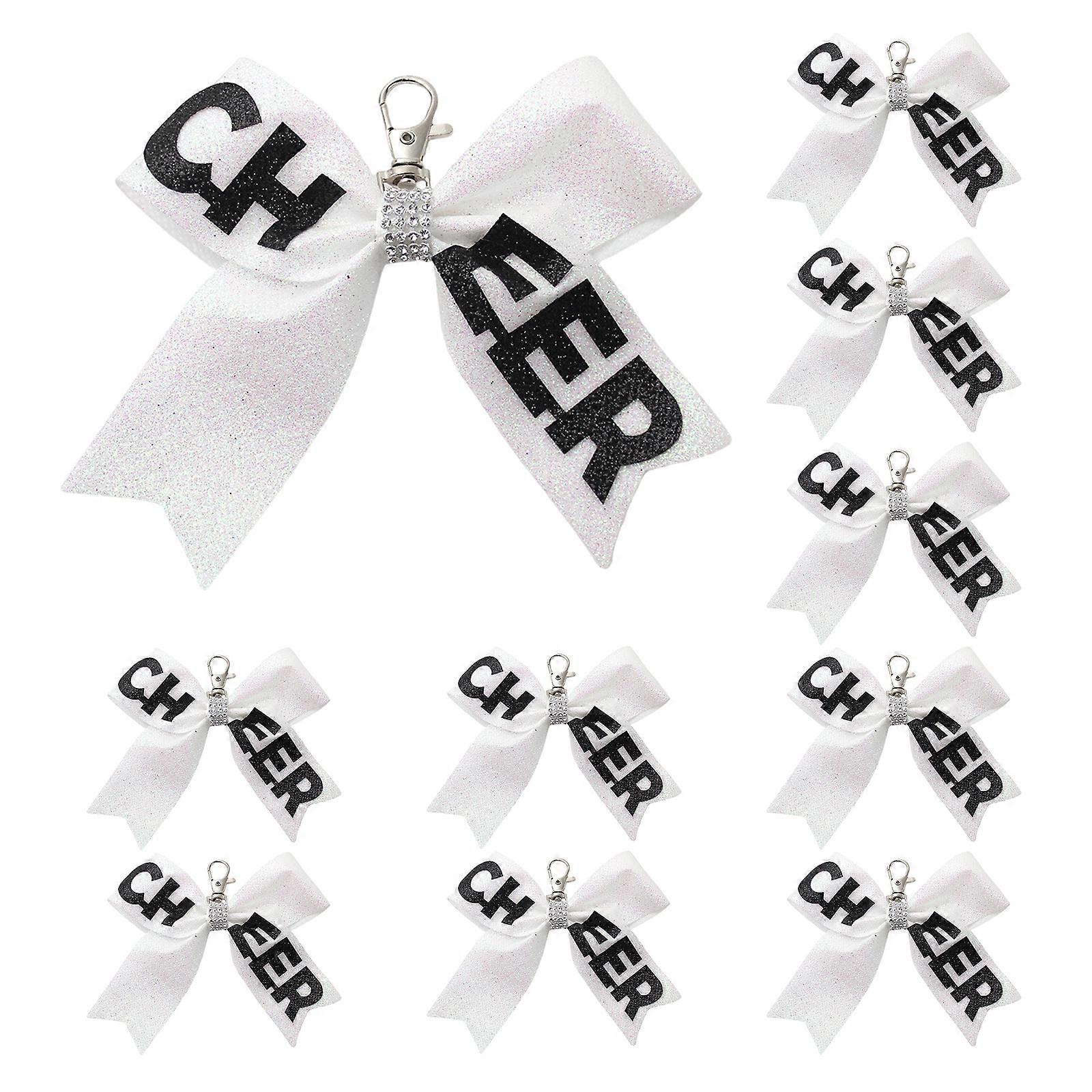 10Pieces Cheer Bowknot Keychains Cheerleading Keychain Collection Sparkly Designs Bag Pendant For Everyday Use White
