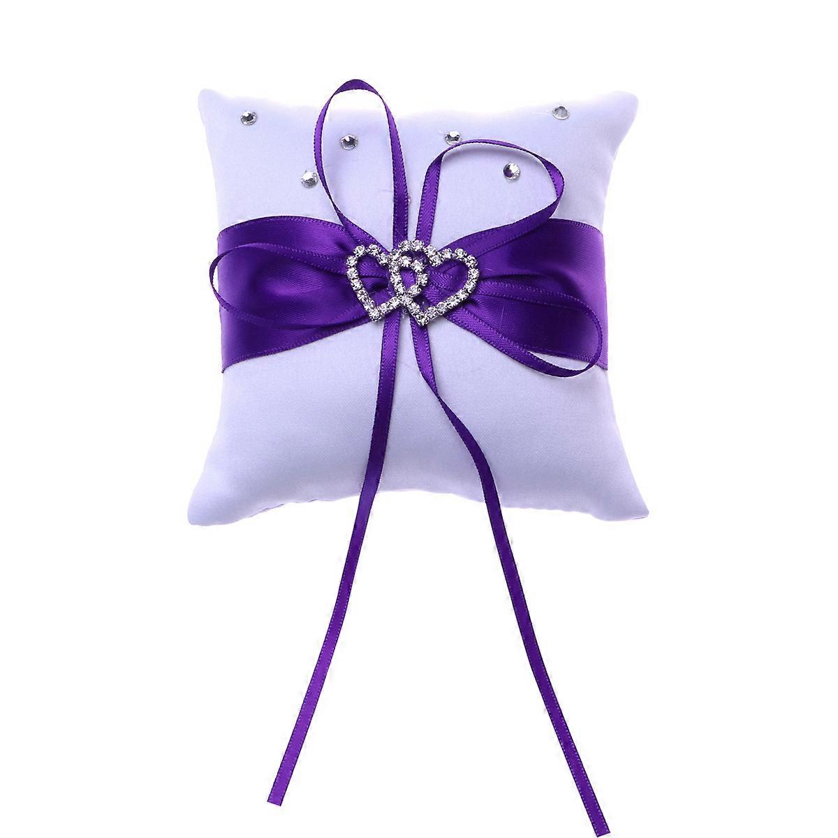 10x10cm Double Heart Bridal Wedding Ceremony Pocket Ring Bearer Pillow Cushion with Satin Ribbons (Purple)