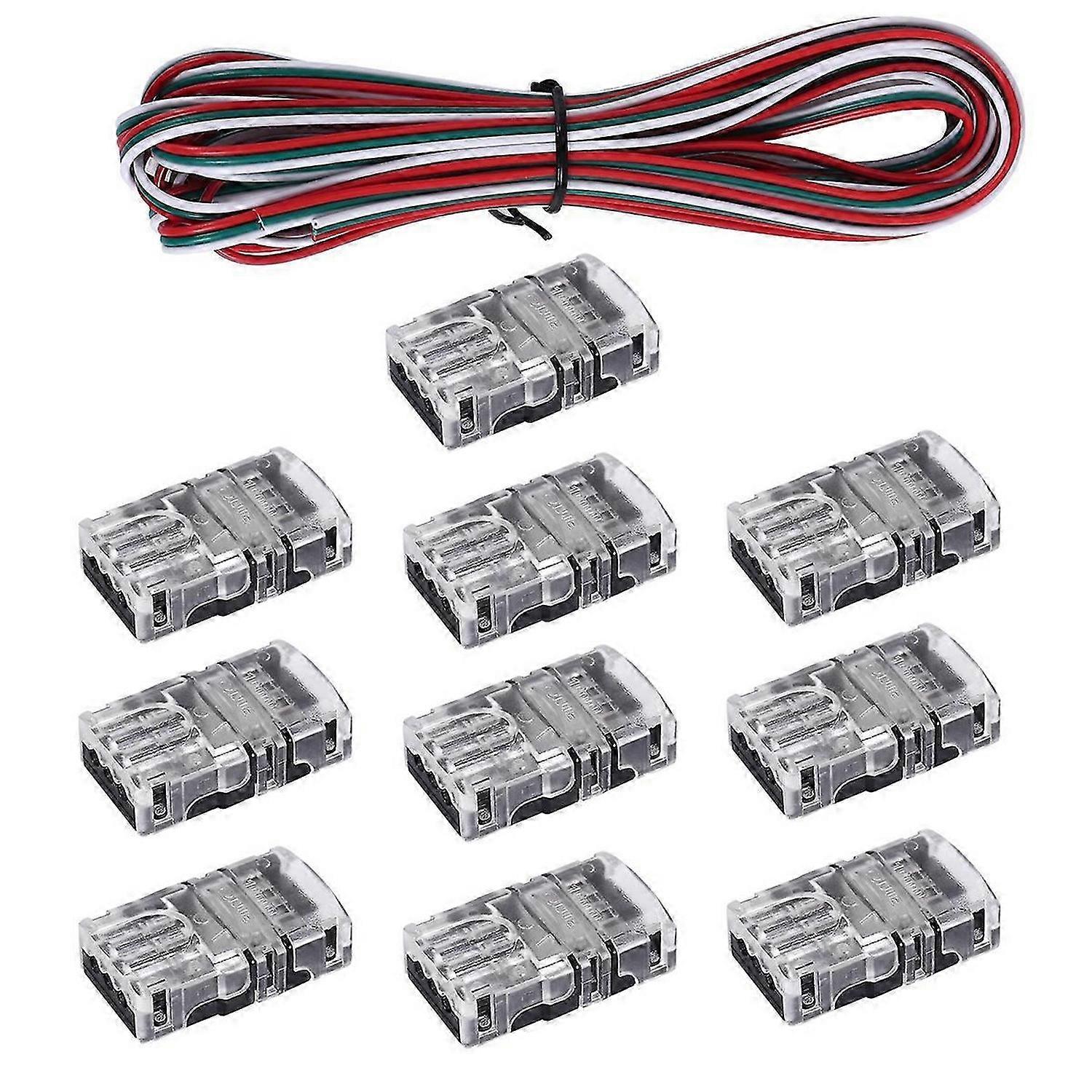 Firm connection: led strip connectors uses a bite design like a , which allows the connector to firmly fix the wires and led strips, so you no longer have to worry about basic problems such as poor contact, which a lot of time and money Rugged yet : The main material of LED corner connector is quality plastic and tinned copper, sturdy and , not easy to break or damage, for safe use, with high working performance, which ensures that light connectors kit can be firmly connected to the light strip, so you can use 3 pins light connectors with confidence Easy to use: you just need to put the led strip and wire above the interface of tunable led strip connector, and then it down with your hand or pliers to complete the connection, no welding or other tools are required; 3 Pin LED strip connectors are not powered, please check whether the voltage of your light strip and power supply match before use Wide compatibility: the interface size of 3 pin LED strip connector is 10 mm/ 0.39 inch, proper size for use; There are 3 welding ports, which are suitable for of 3 pin LED strip; You can apply our light connectors to no soldering LED strip of ws2811, ws2812b, sk6812, etc.<br><br>colour: as shown Material: plastic + metal<br><br>Package Contents: 10 x strip to wire connectors 1 x 5 m/16.4ft cable<br><br>Only the above package content, other products are not included. Note: Light and different displays may cause the color of the item in the picture a little different from the real thing. The measurement allowed error is +/- 1-3cm.