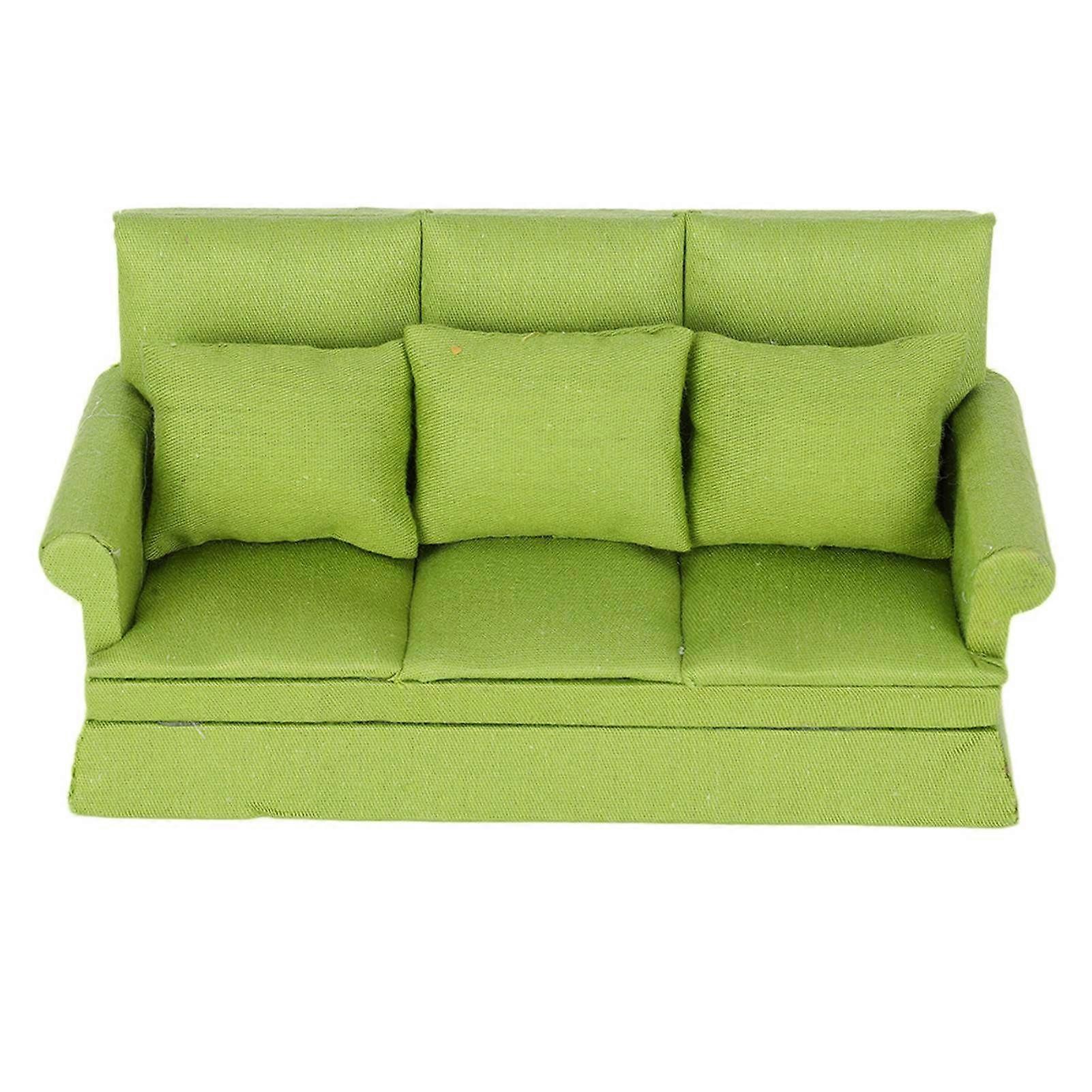 1:12 Doll House Mini Sofa with 3pcs Pillow Living Room Furniture Wooden Doll House Decoration AccessoriesGreen