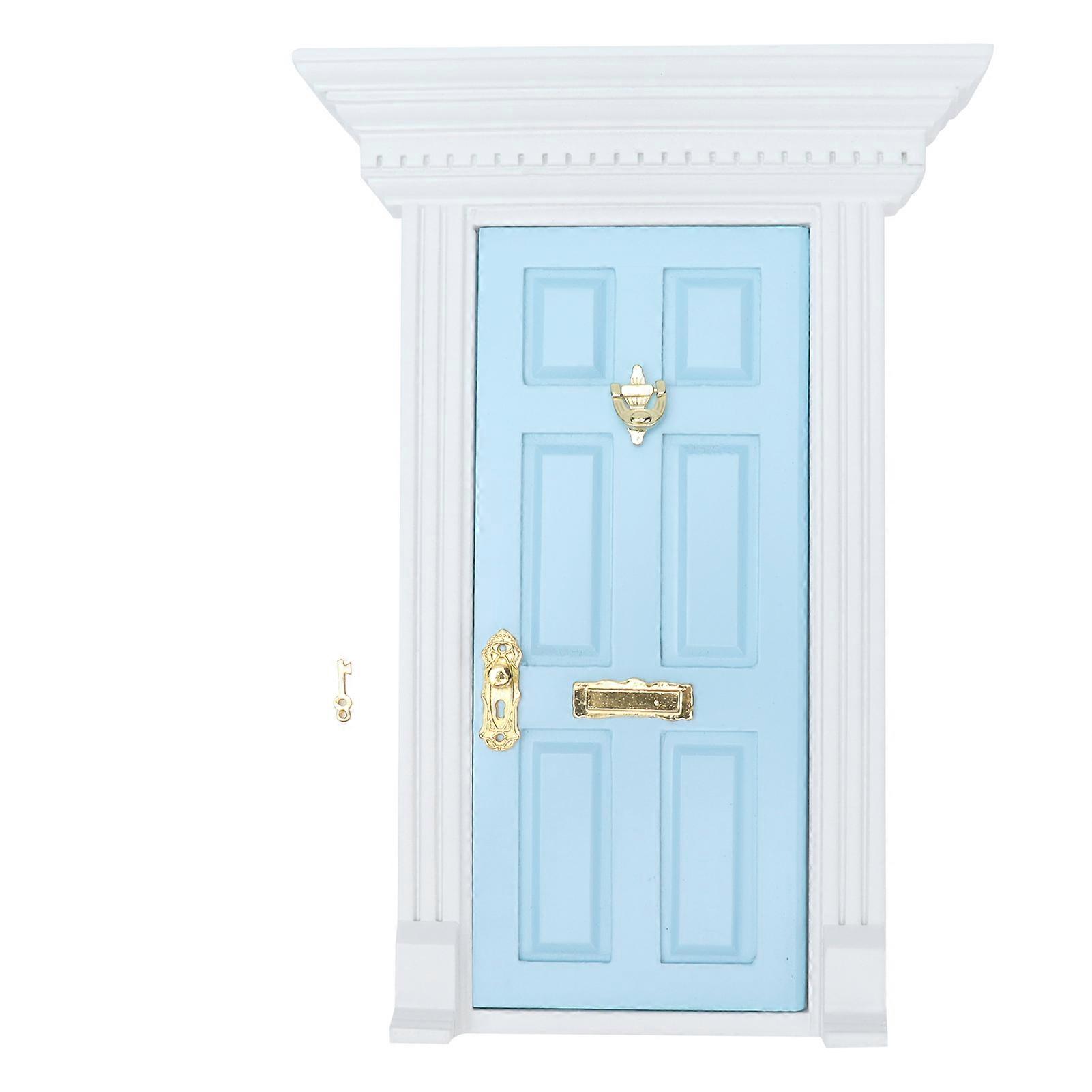 1:12 Dollhouse Wooden Door Exquisite Miniature Door Furniture Model Pretend Play ToyBlue