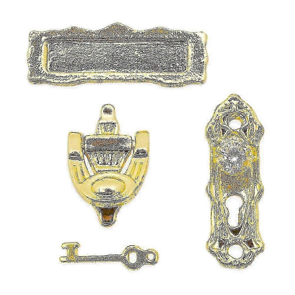 1:12 Miniature Gold Door Ring Lock Door Set Alloy Retro House Miniature Door Lock Doll House Furnit (haoyi