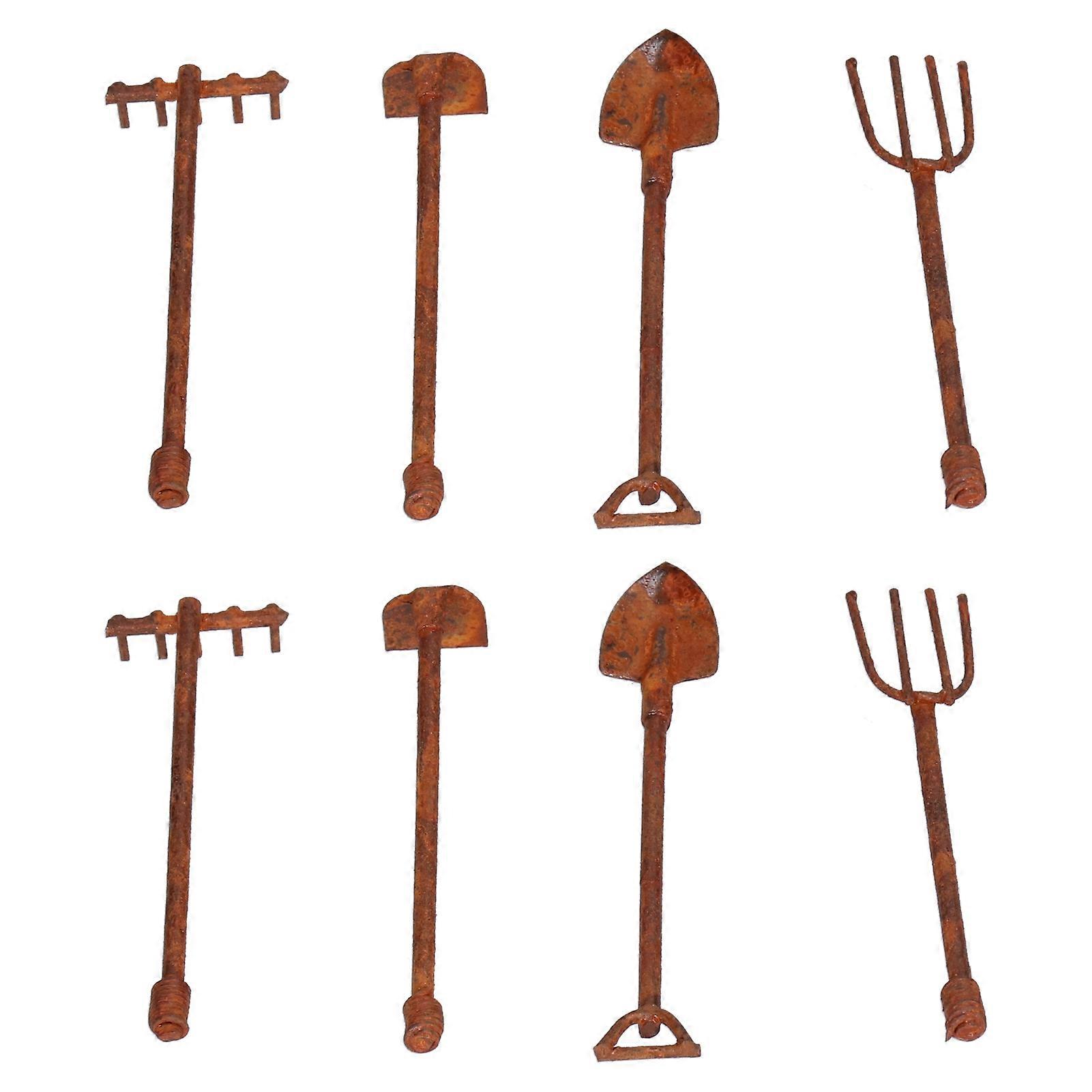 1:12 Scale Dollhouse Farming Tools Miniature Rusty Metal Shovel Hoe and Pitchfork Kit for Garden Landscape4 Tools