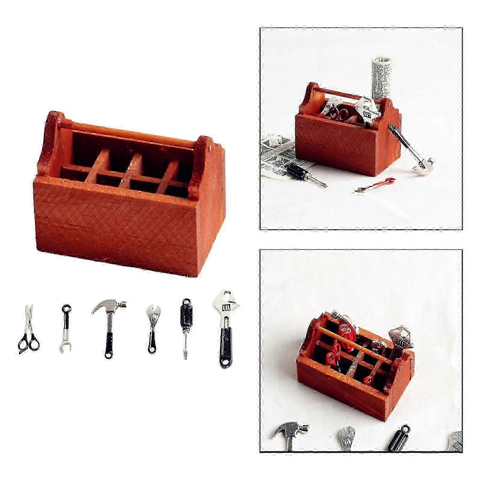 1/12 Wooden Tool Case, Mini Garden DIY Tools Kit, Miniature Furniture Pretend Play Toys for Creative DIY Projects, Architecture