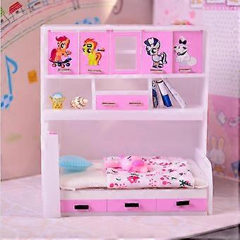 1/12 Miniature Children Princess Cabinet Bed Dollhouse Bedroom Furniture Kids Pretend Play Toy