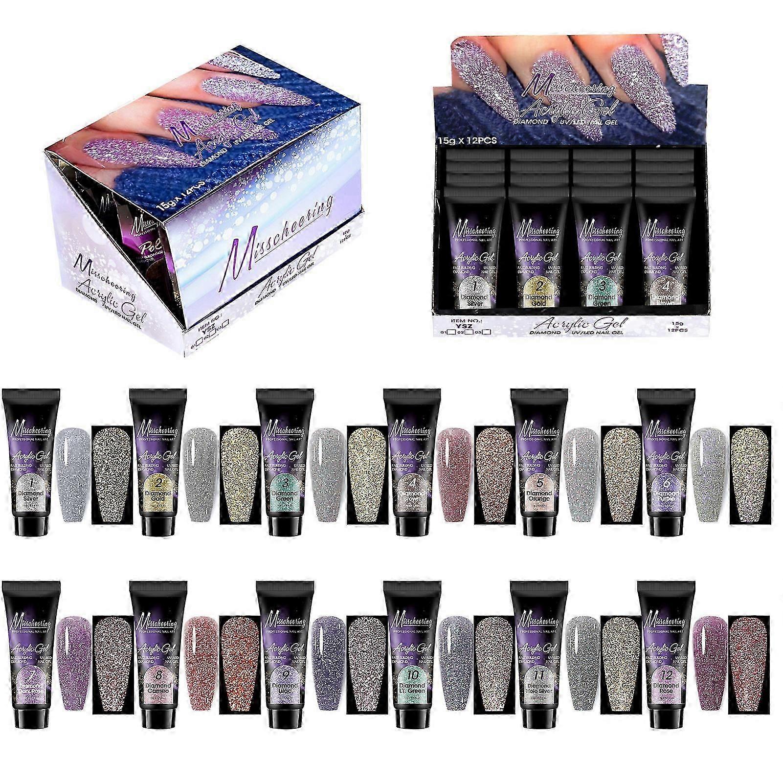 12 Colors Poly Nail Extension Gel Plish Set Glow-in-the-Dark Solid Color Neon Gel Nail Art Design Beginner Kit Gift