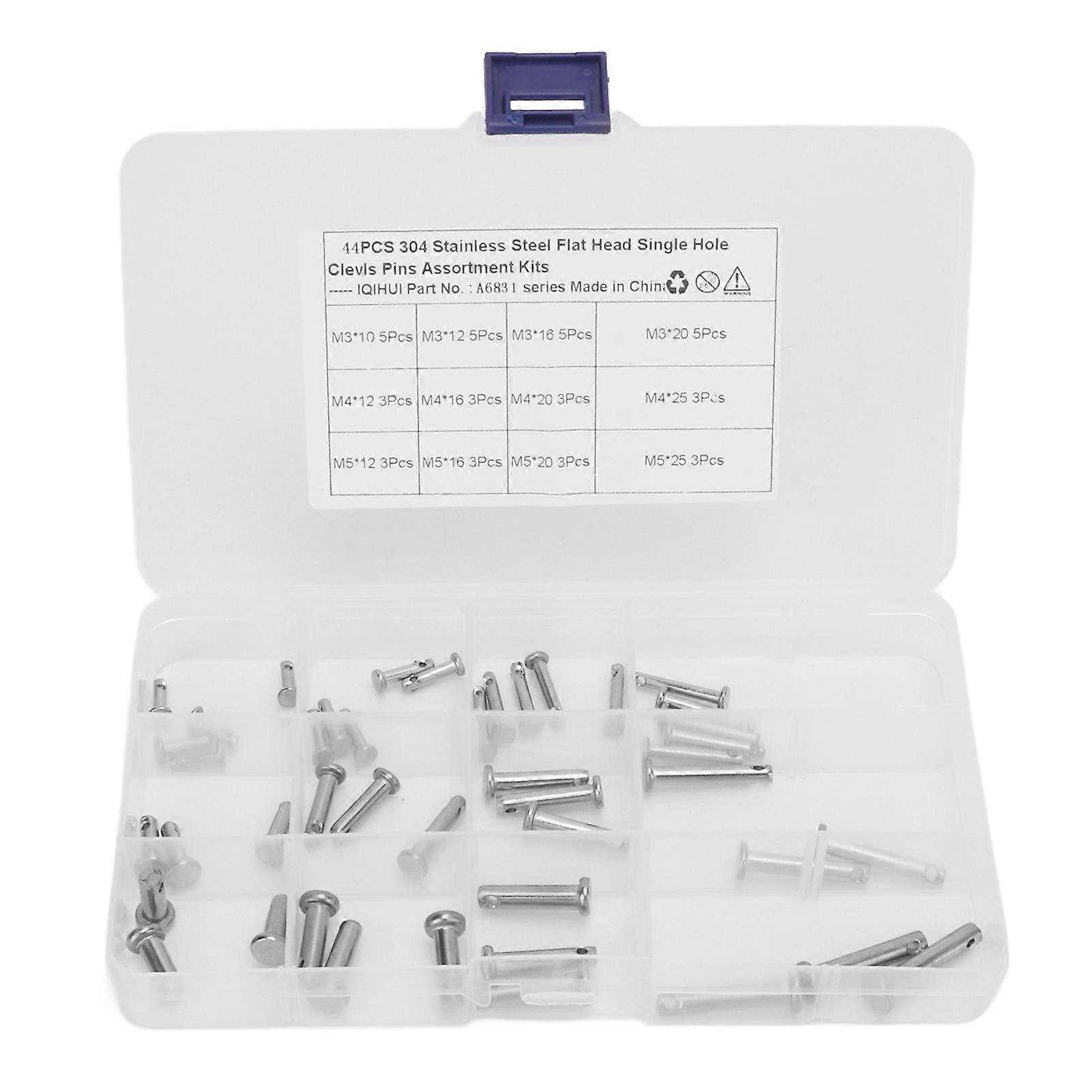 12 Sizes Stainless Steel Clevis Pin Single Hole Flat Head T Shape Round Pin Assortment Kit for Car 44pcs