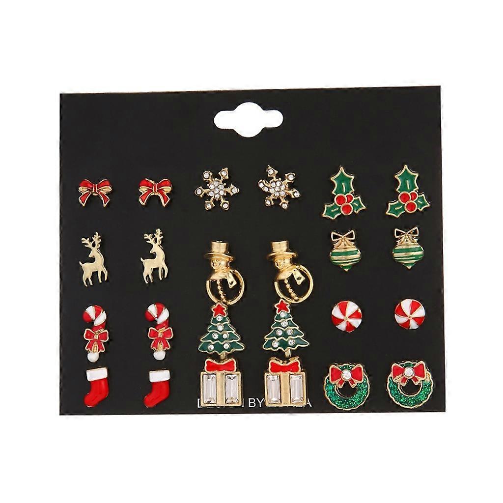 12 Pairs Crutch Bow Stud Earring Xmas Tree Wreath Piercing Earring Jewelry
