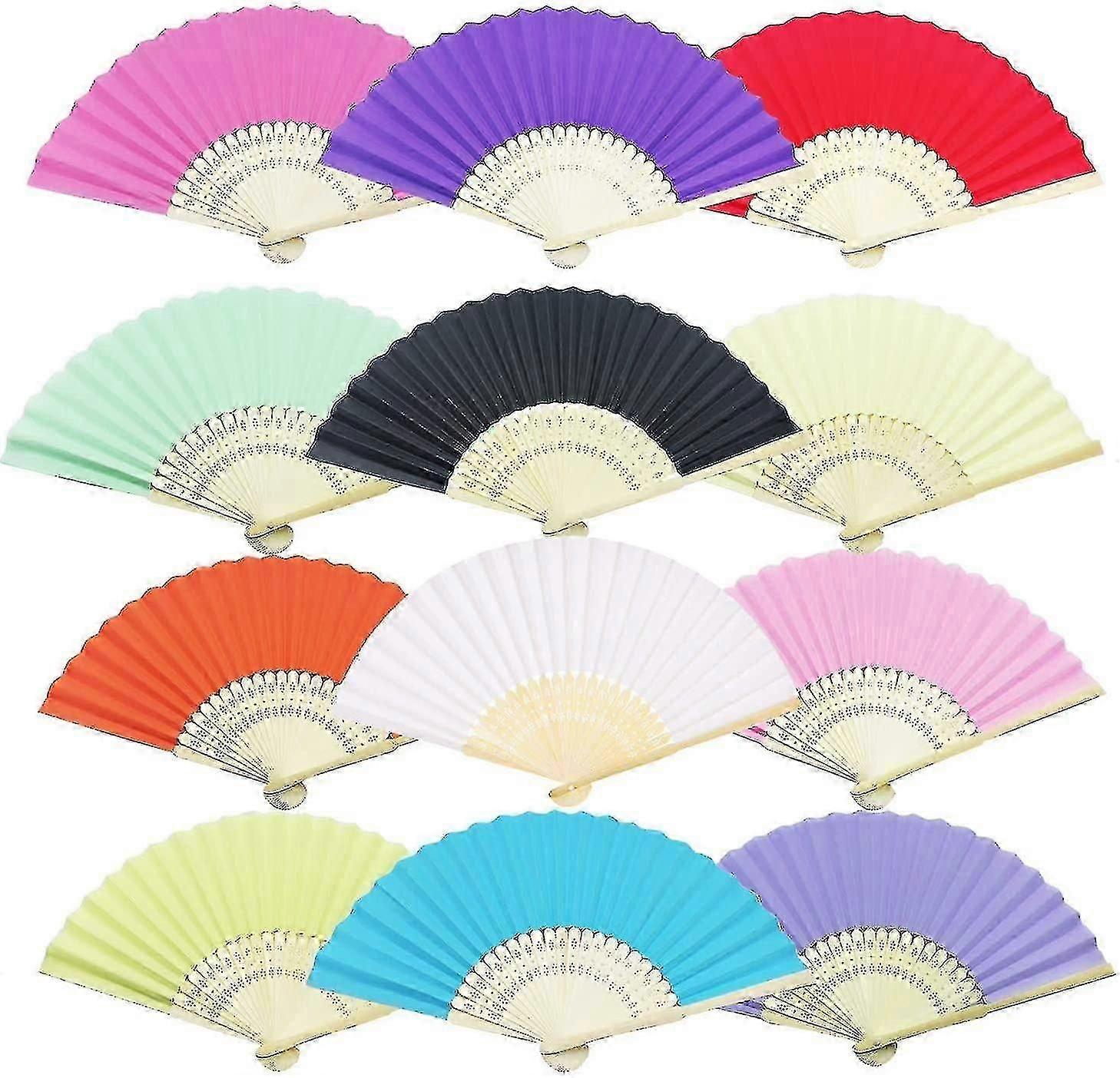 12 Pcs Hand Fan Foldable Paper Fan For Dancing, Part, Picnic, Wedding Party Gift (multicolor)