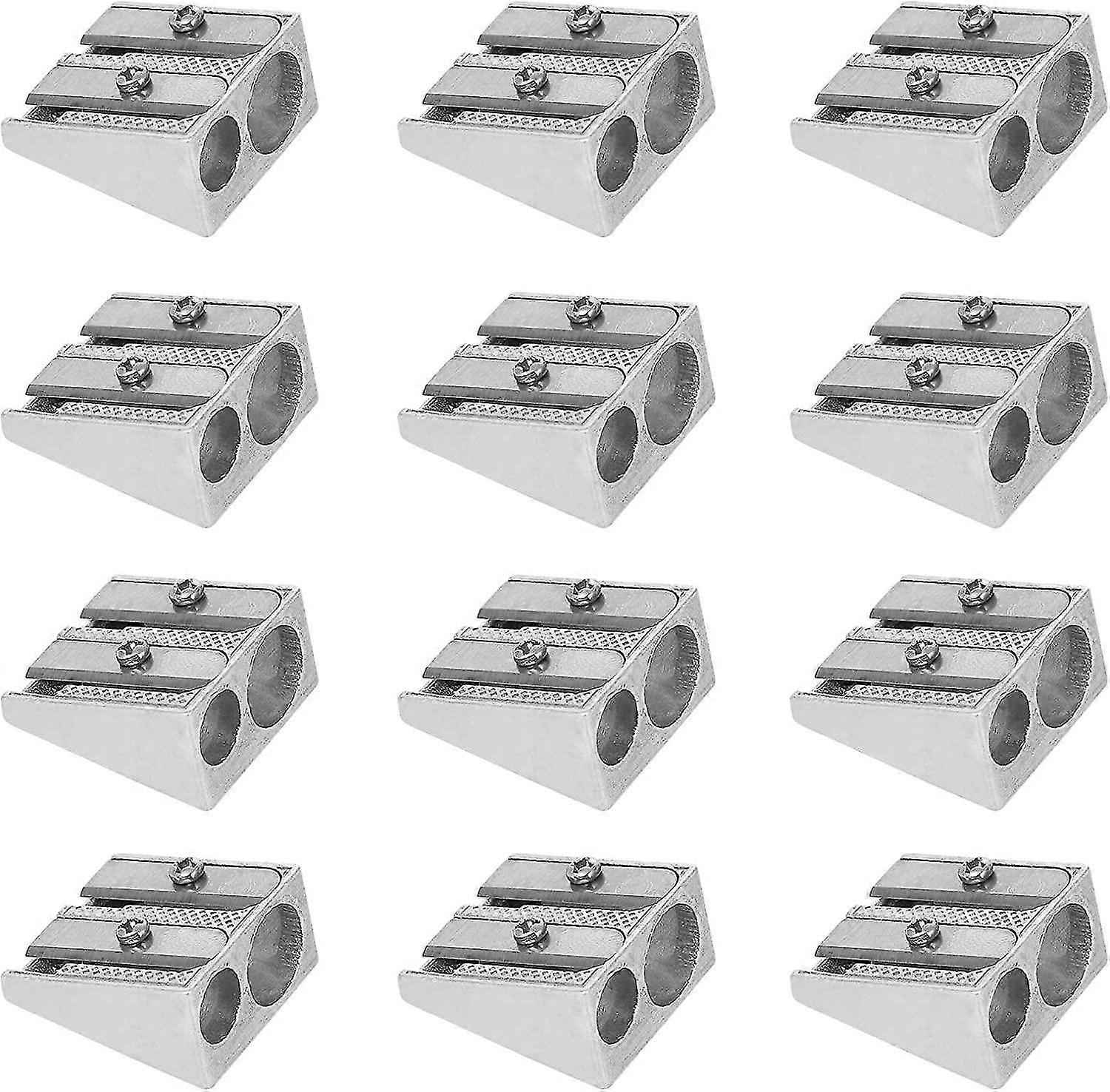 12 Pack, Aluminum Pencil Sharpener with 2 Holes, Manual Bimetal Dual Sharpener Blade Dual Hole Recta