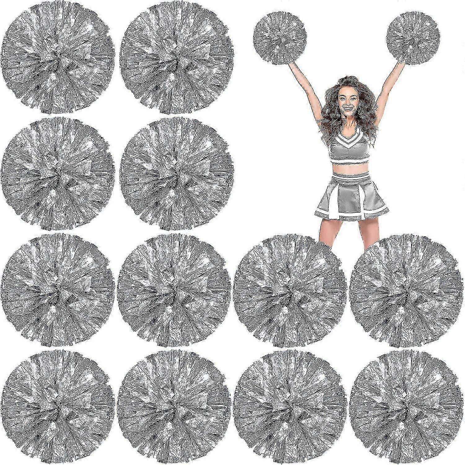 12 Pack Cheerleading Pom Poms, Metallic Foil Pom Poms With Baton Handle Cheer