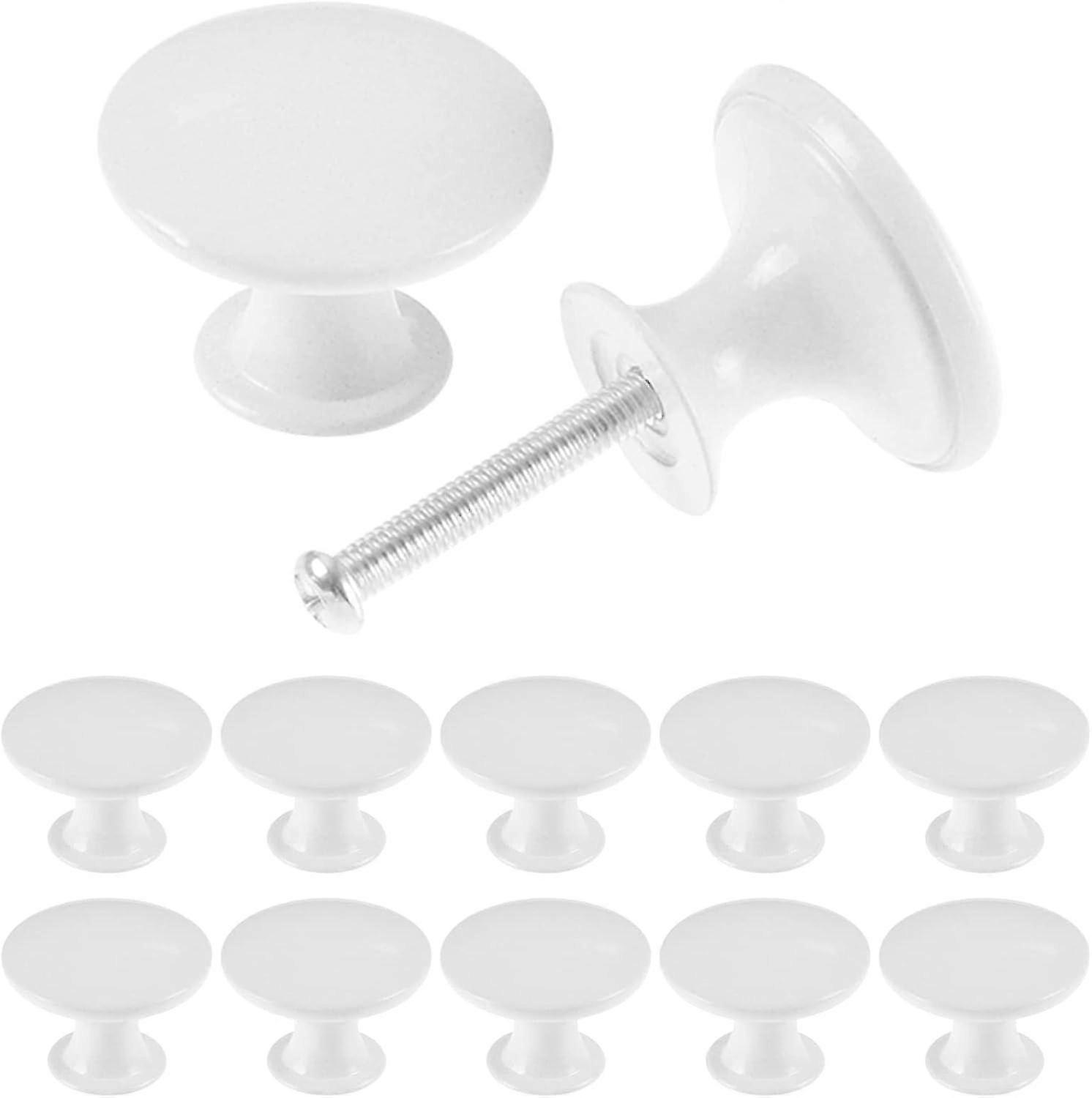 12 Pack Vintage Chic Cabinet Knobs For Antique Kitchen Drawer, 30mm Round Door Knobs, White
