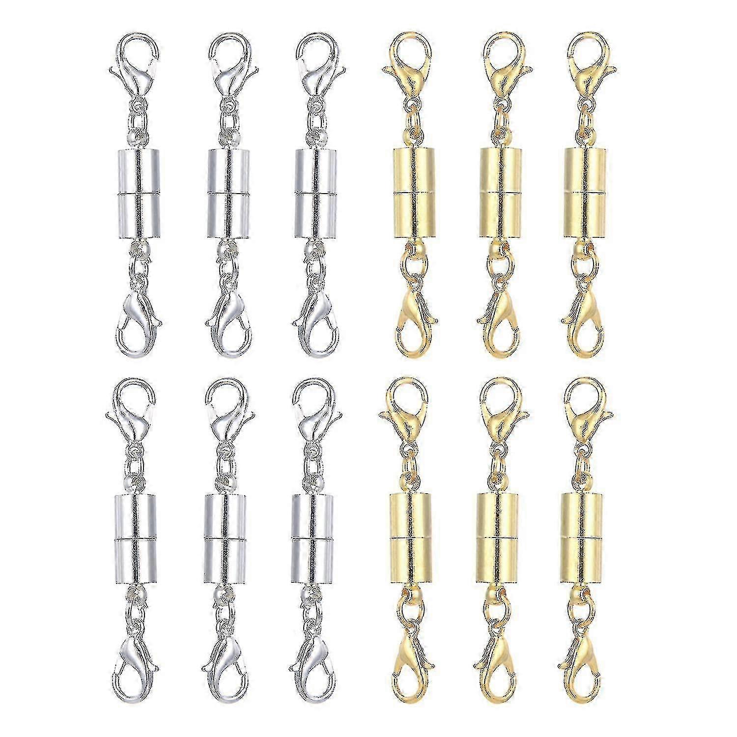 12 Pack Magnetic Clasp Converter Double Lobster Magnetic Jewelry Clasps For Necklace Bracelet Clasps, 6 Gold + 6 Silver -Yx