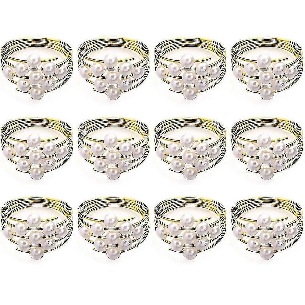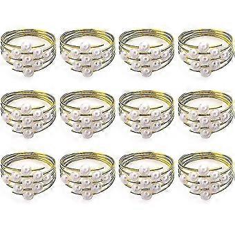 12 Gold Napkin Rings Weddings Favors Napkin Rings For Dinner Table Pearl Napkin Buckles Rings