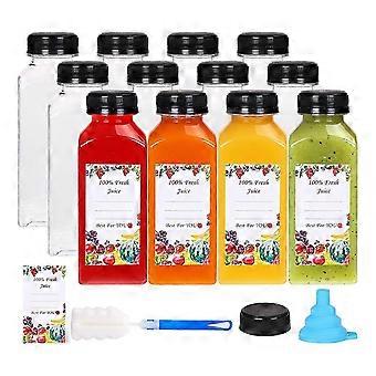 12Pcs Plastic Juice Bottles with Tamper Evident Caps, Reusable Clear Juice Containers with Labels, F