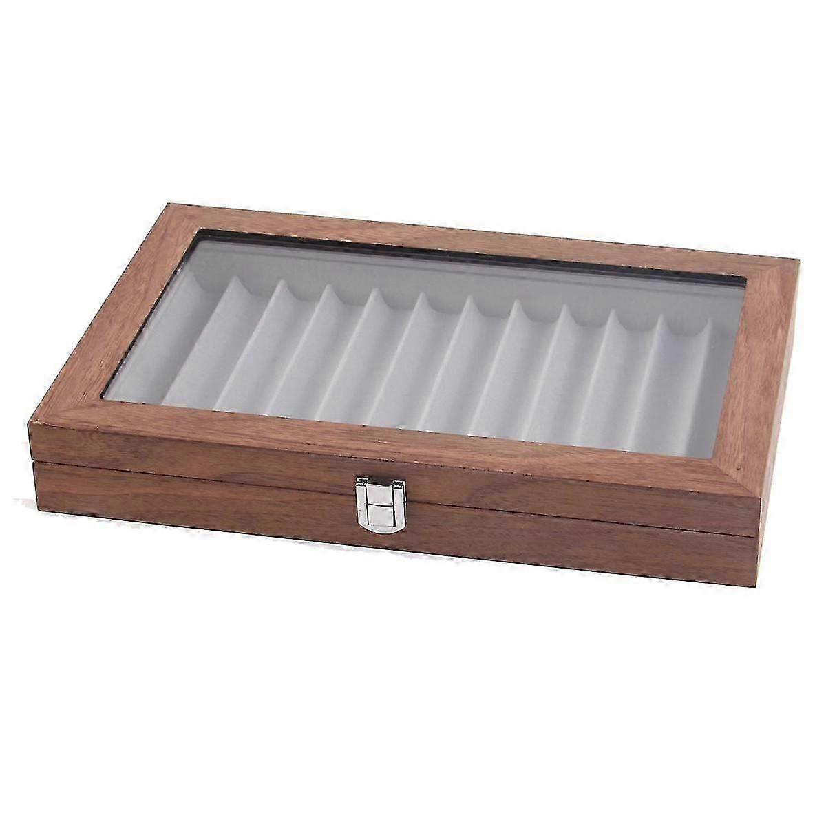 12 Grid Walnut Pen Storage Holder Pen Case Wear-Display Student Gift Anti Dust- Fountain Box Pen-