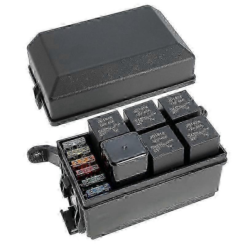 12V 6-Slot Relay & Fuse Box Kit with ATC/ATO Blade Fuses, Metallic Pins Spade Connectors