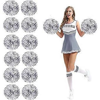 12pcs Cheerleading Pom Poms With Finger Holes Metallic Foil Cheer Pom Poms