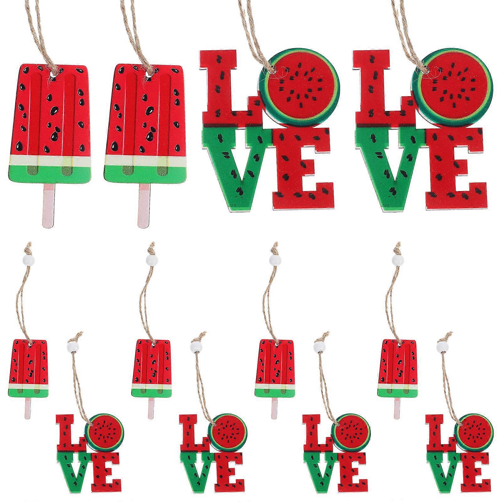 12Pcs Summer Watermelon Wood Pendant Summer Themed Wood Ornament Summer Decorations
