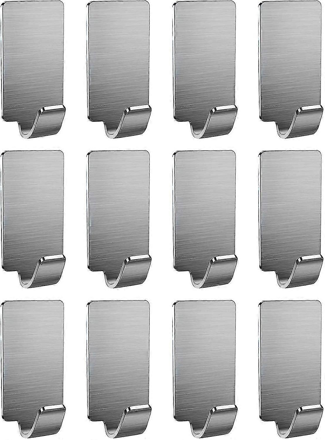 12pcs Stainless Steel Self Adhesive Hook, For Bedroom, Door Hook, Hat, Home, Waterproof Bathroom Towel Wall Hook