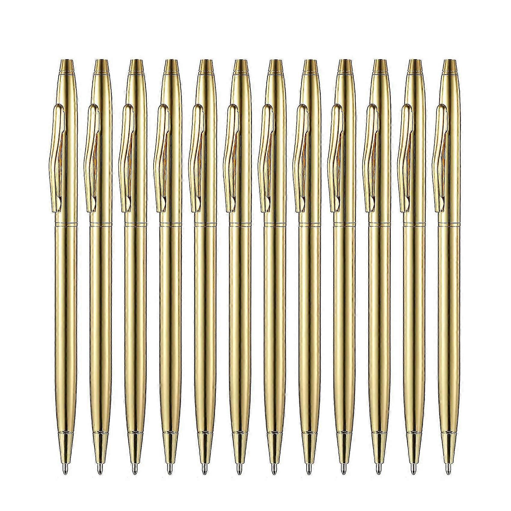 12 PCS Gold Slim Ballpoint Pens Black Ink 1 mm Medium Point Metallic Retractable Pens for Students Teachers Office