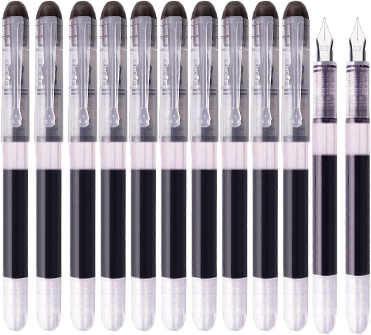 12pcs Black Disposable Fountain Pens, Black Ink Fountain Pens for Writing, Smooth-Writing Office Supplies for Sketching, Journaling, Calligraphy, Dood