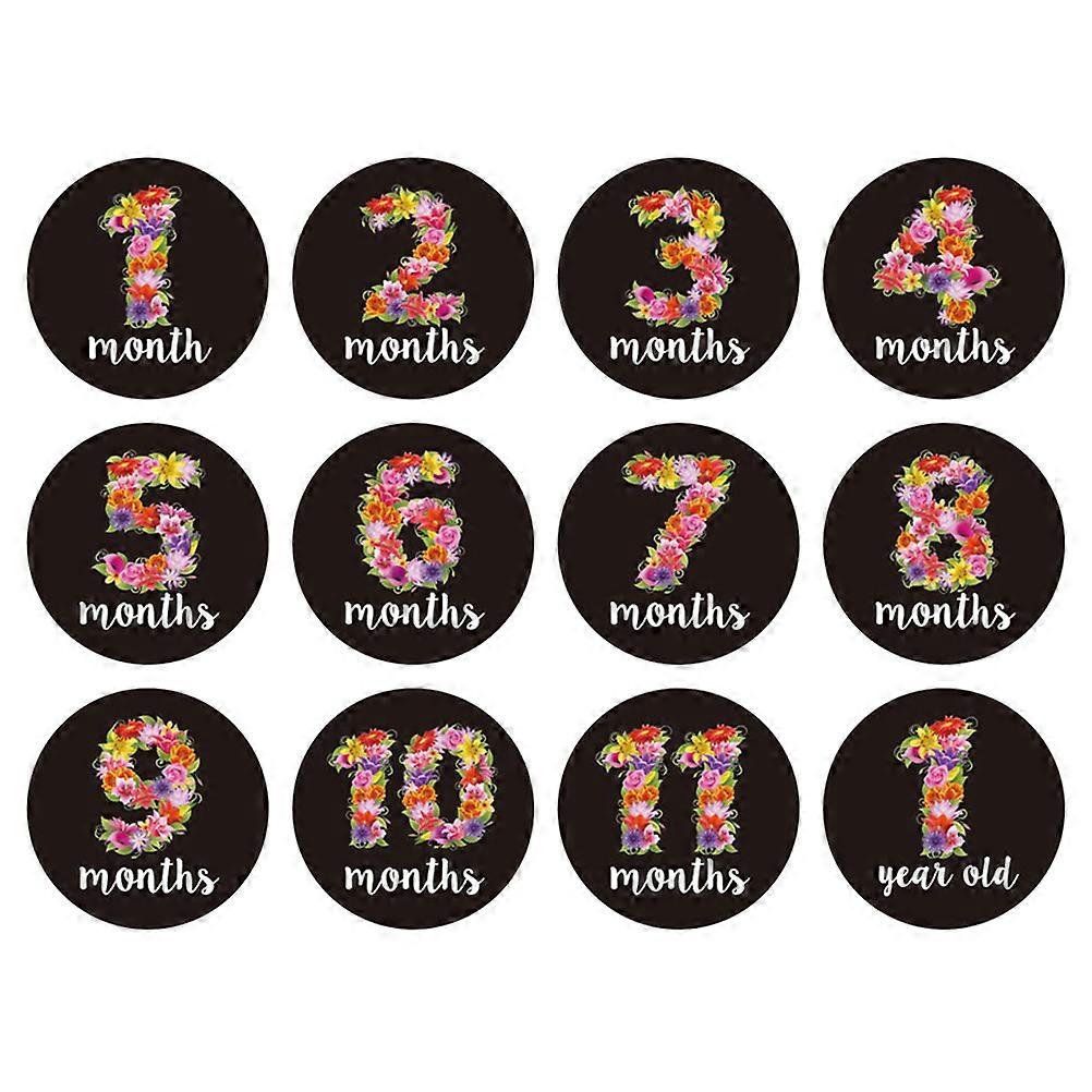 12PCS Self-Adhesive Round Baby Month Stickers For Newborn Photography Perfect For Milestone Tracking In Assorted Color