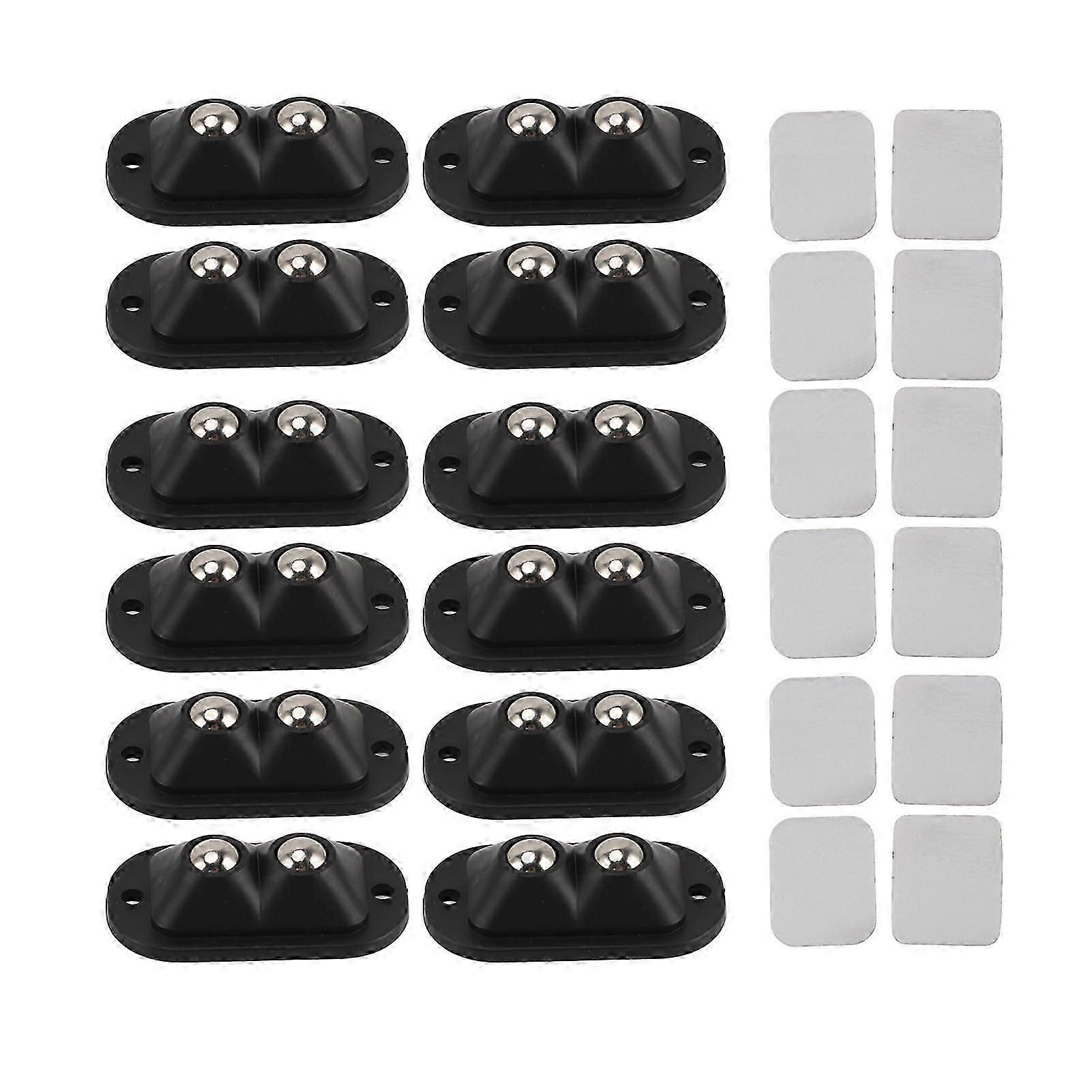 12pcs Mini Caster Wheels Self Adhesive Double Bead Labor Saving Quietly Moving 360 Degree Rotation Sticky Pulley for Kitchen Appliances Furniture Blac