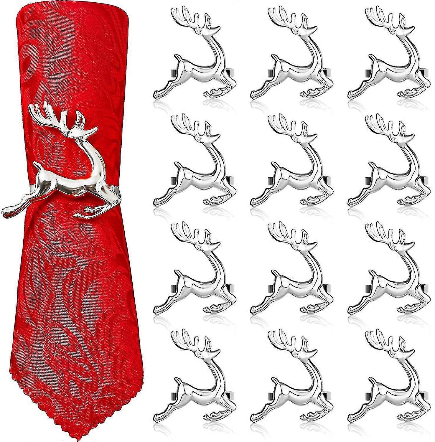 12pcs Christmas Reindeer Napkin Rings, 6cm Silver Deer Napkin Holders Reindeer Napkin Buckle For Christmas Lunch Thanksgiving Party Holiday Wedding Ta