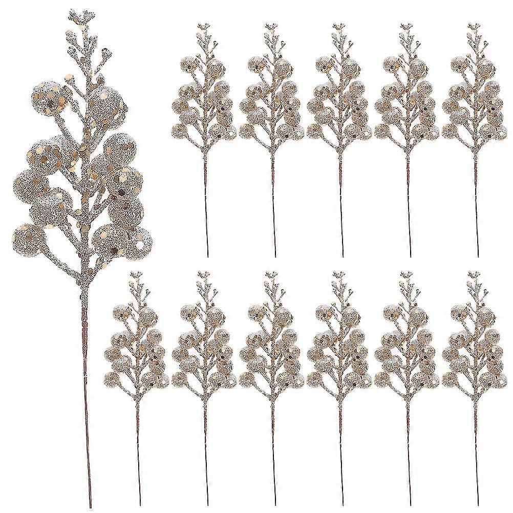 12Pcs Xmas Glitter Berries Stems Fake Christmas Picks Glitter Sticks Xmas Party Favors