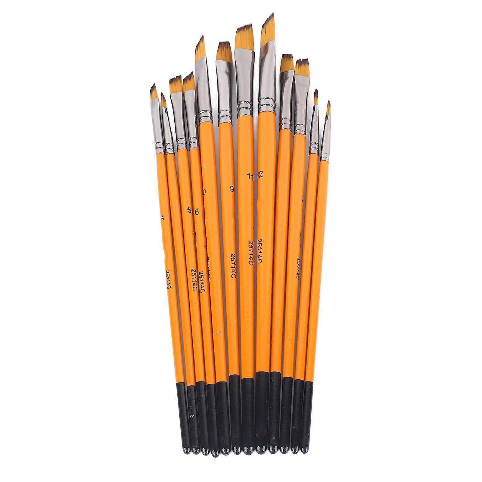 12Pcs Acrylic Paint Brushes Smoothing Nylon Wooden Handle Metal Ferrule Widely Used Artist Paint Brushes for Craft Art Orange Handle Oblique Tip