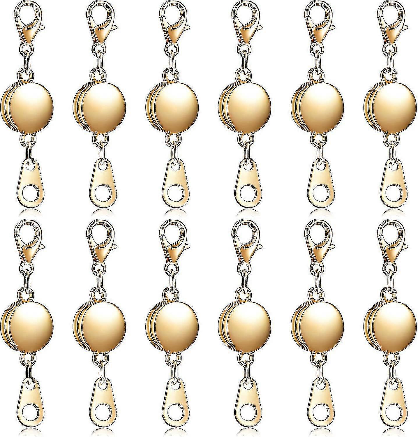 12 Pieces Locking Magnetic Jewelry Clasp Round Necklace Clasp Closures Bracelet Extender For Jewelry Making (gold)