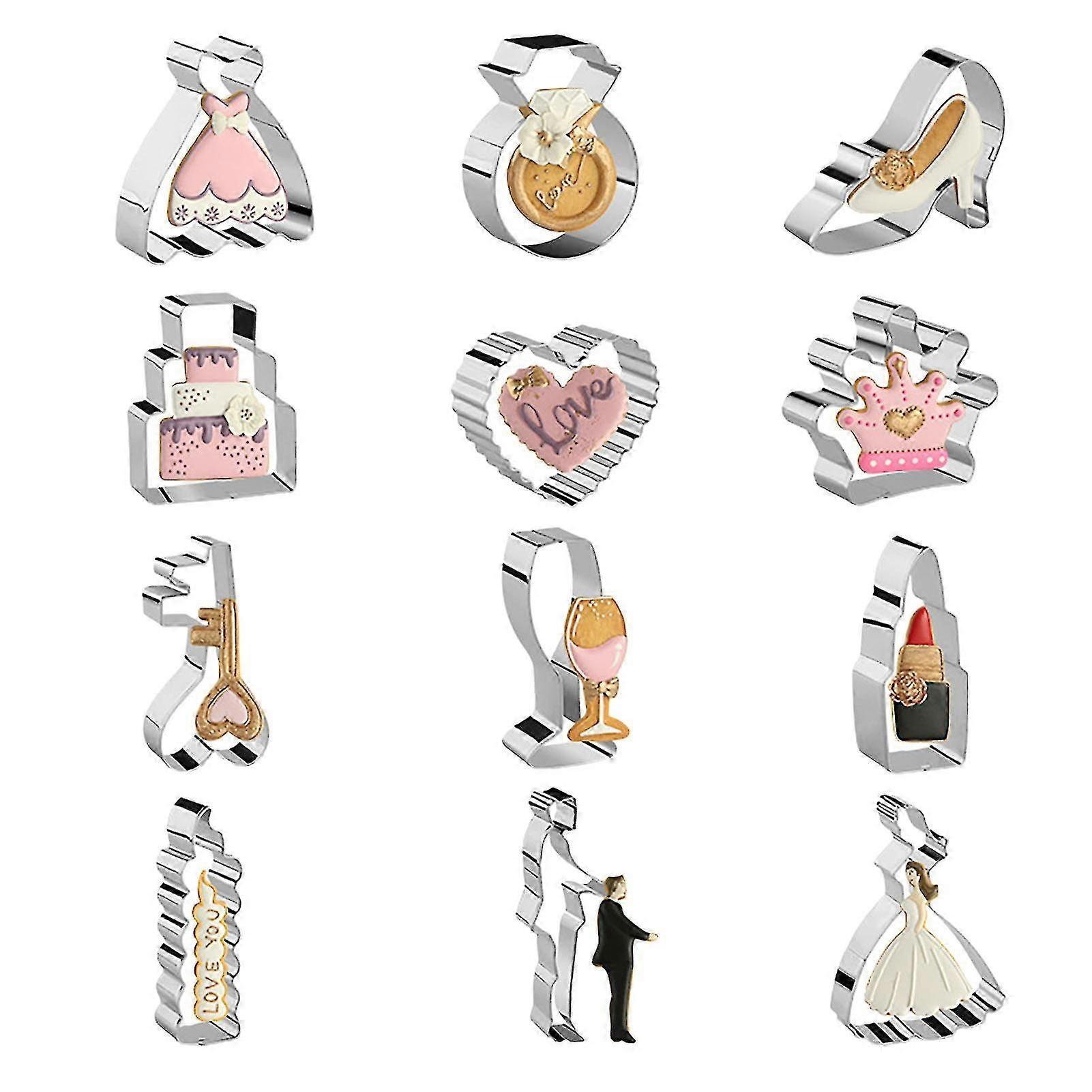 12 Pcs Cookie Cutters Different Shapes Food Grade Stainless No Deformation Polished Heat Resistant Wedding Party New Year Birthday Biscuit Diy Molds