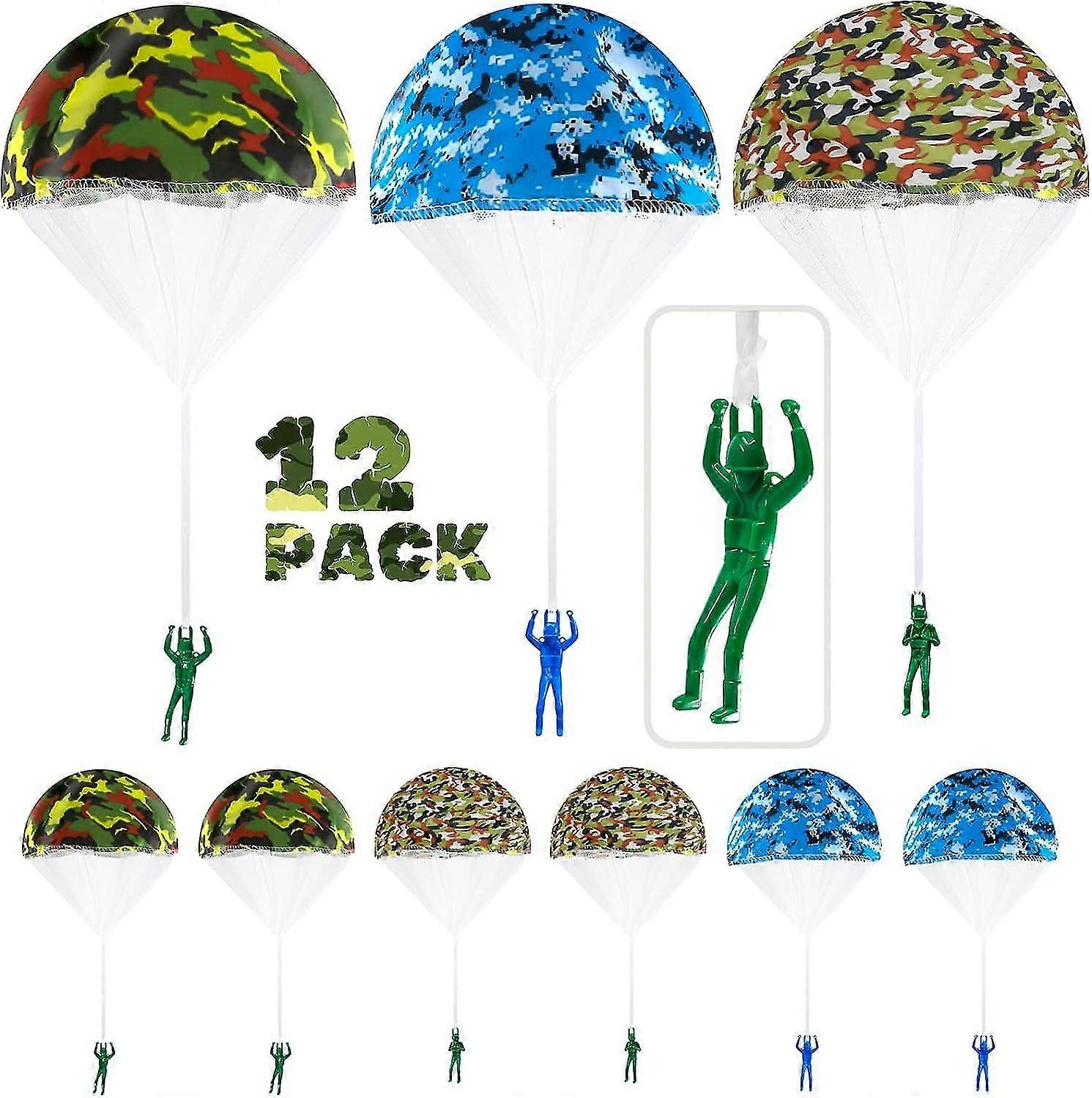 YOUR OWN LITTLE ARMY - Military themed parachute toys. Whether youre a kid at heart or have kids--or both--our soldiers parachute toy provide hours of fun. 12 bulk parachutes toys great for kids parties, the parachute toy is perfect for trading, party favors, awards, and giveaways. If you plan on having a military themed party, these camouflage army parachute men are great for play. Theyre also great as piata fillers, holiday stocking stuffers, and classroom treasure box prizes EASY TO PLAY- No more strings tangled playing with this camo tossing toy. Kids just need to roll up the parachute, then throw the parachute up high and wait for it to land. No battery or assembly is required. The size is small for you easily to fold and roll up when you need to store it, and won't occupy space, you just need to put it in any corner STIMULATE POTENTIAL - These army camo parachute toys are featured with green and camouflage colors, which are eye-catching, interesting and charming, as a kind of outdoor games toys for kids, parachutes can well enhance children's eyeball control ability, exercise children's hand-eye coordination ability, cultivate children's body muscle control ability, let children think logically since being a child BEST OUTDOOR TOYS - Those army camo parachutes are very entertaining and suitable for a group of people to play. Not only children, but adults can also participate. Can enjoy the happy hours in open areas such as backyards, sand beaches, grasslands, yards, front doors, parks and other places. Men, women and children come together and play outdoor games with these parachute toys as much as they want for enhancing their relationship. With this outdoor toy your kid will never be bored. LANDING PRINCIPLE - Landing slowly, this parachute toy imitates the real landing situation, will not harm your kids, even if it hit your kids during landing, improving childrens manipulative ability, operational skill, intelligence and creativity while playing simulation games. These army parachute toys are made of polyester cloth and quality plastic materials, which are safe and non-toxic, no worries about whether they will have any adverse to your health