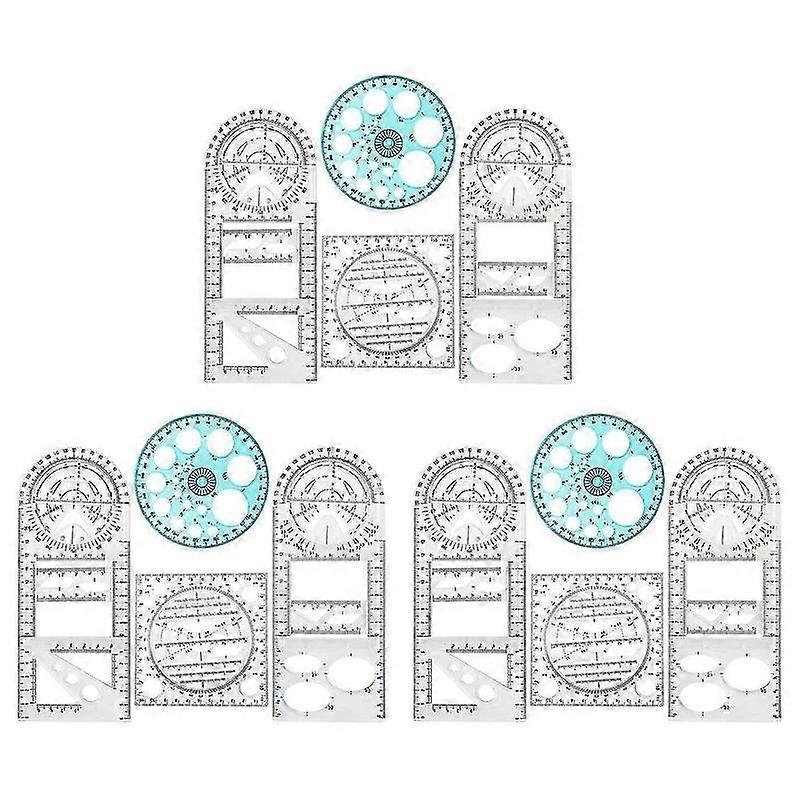 12 Pcs Multifunctional Geometric Ruler Drawing Tools Plastic Ruler Set Mathematics Measuring Circle