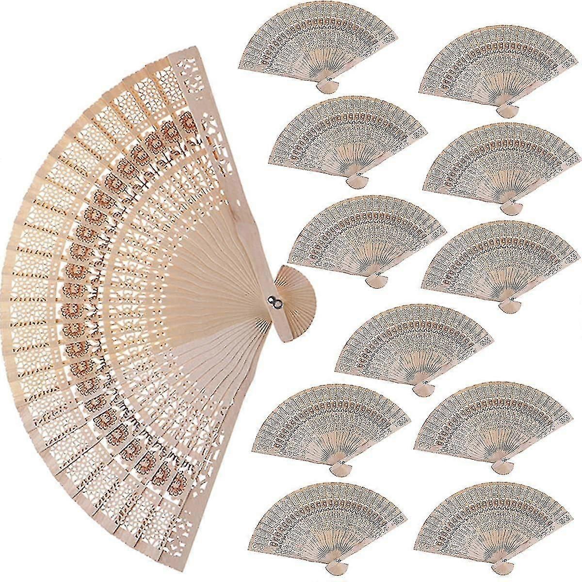 12pcs Sandalwood Fan, 8 Inch Chinese Wooden Openwork Personal Handheld Folding Fan For Wedding Party Home Decorations A