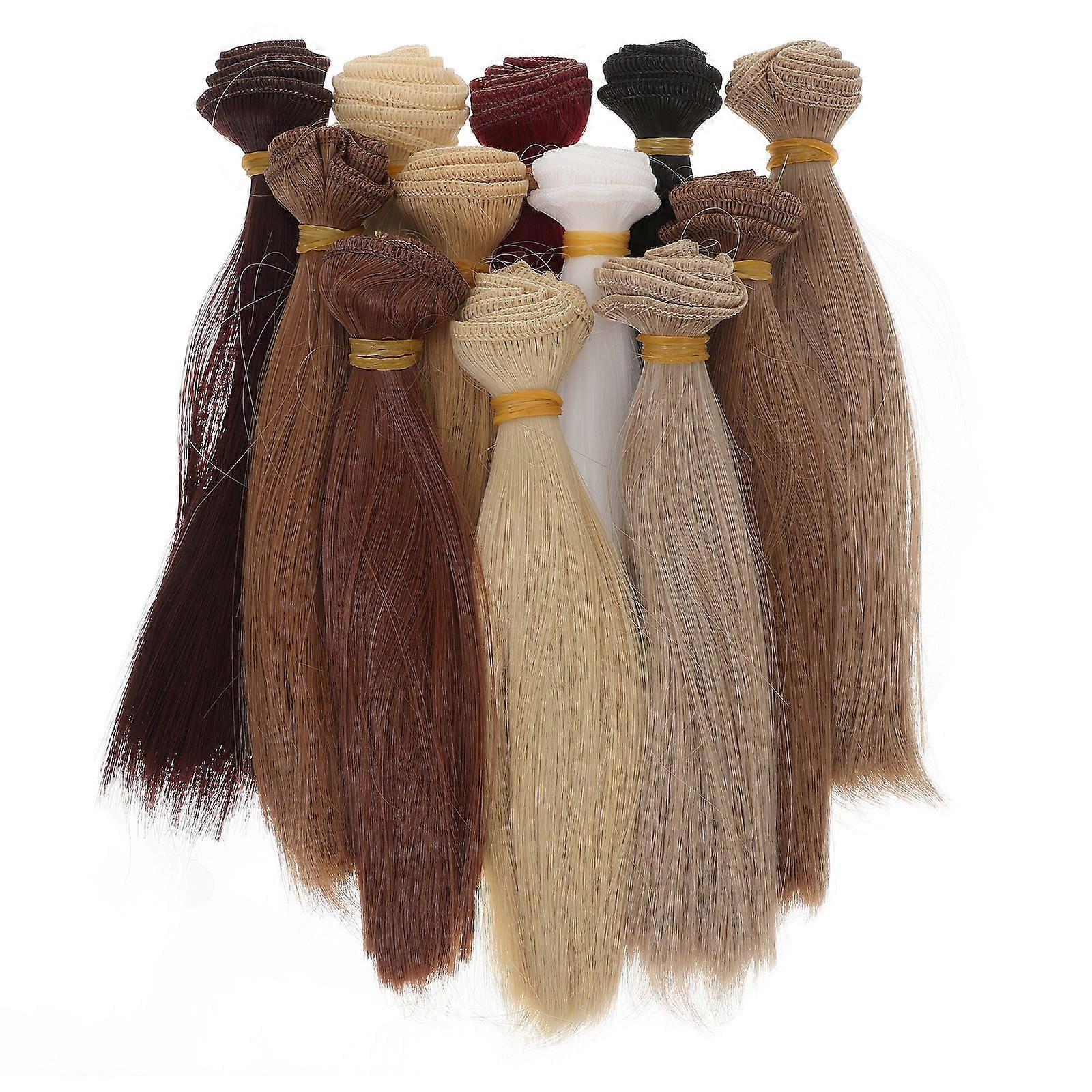 12pcs Heat Resistant Straight Hair Wig Handcraft DIY Doll Wigs Weft Hair Extensions - 100x15cm