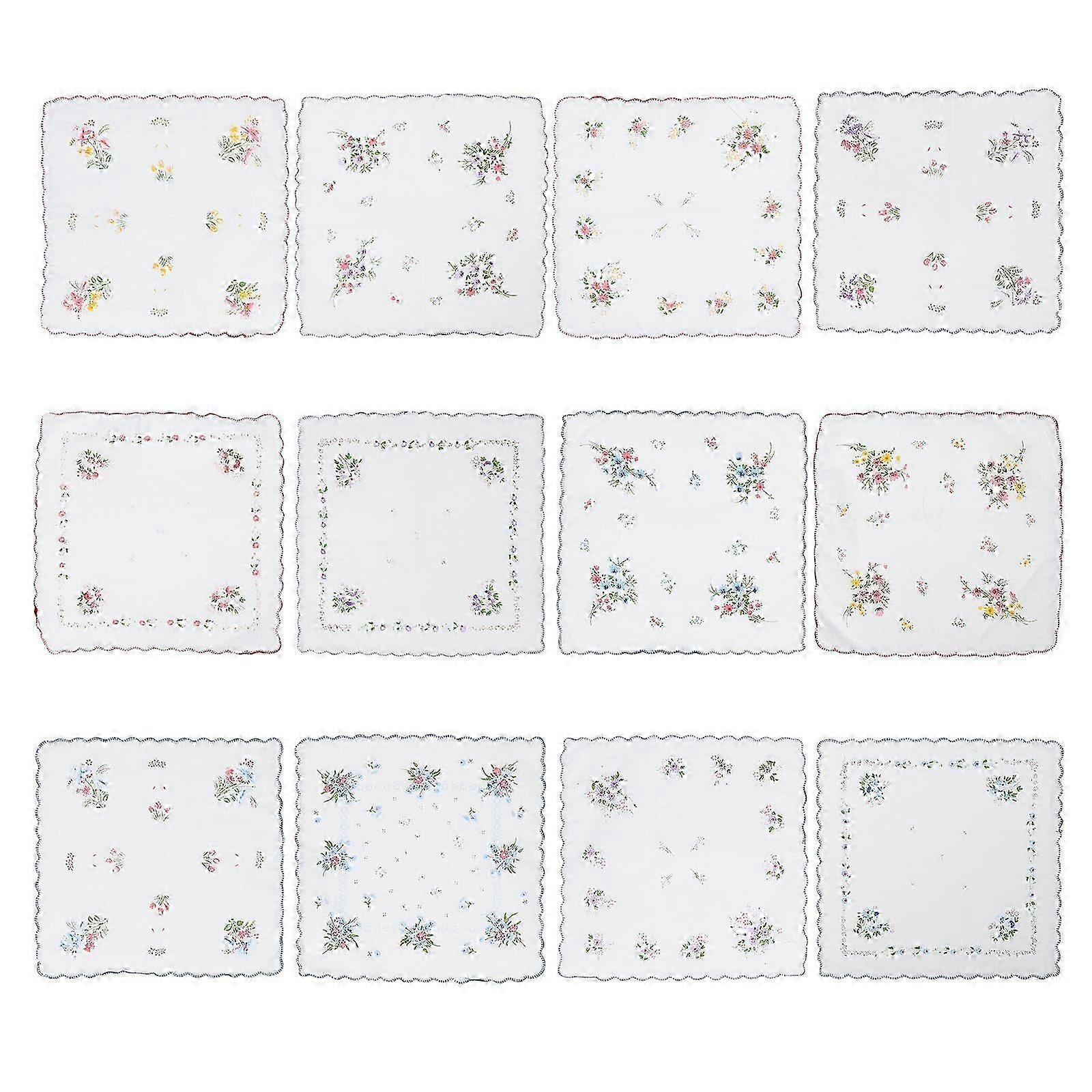 12 Pcs Handkerchiefs Women Ladies Hankies Mother Birthday Present Floral Prints Handkerchief Pocket Squares