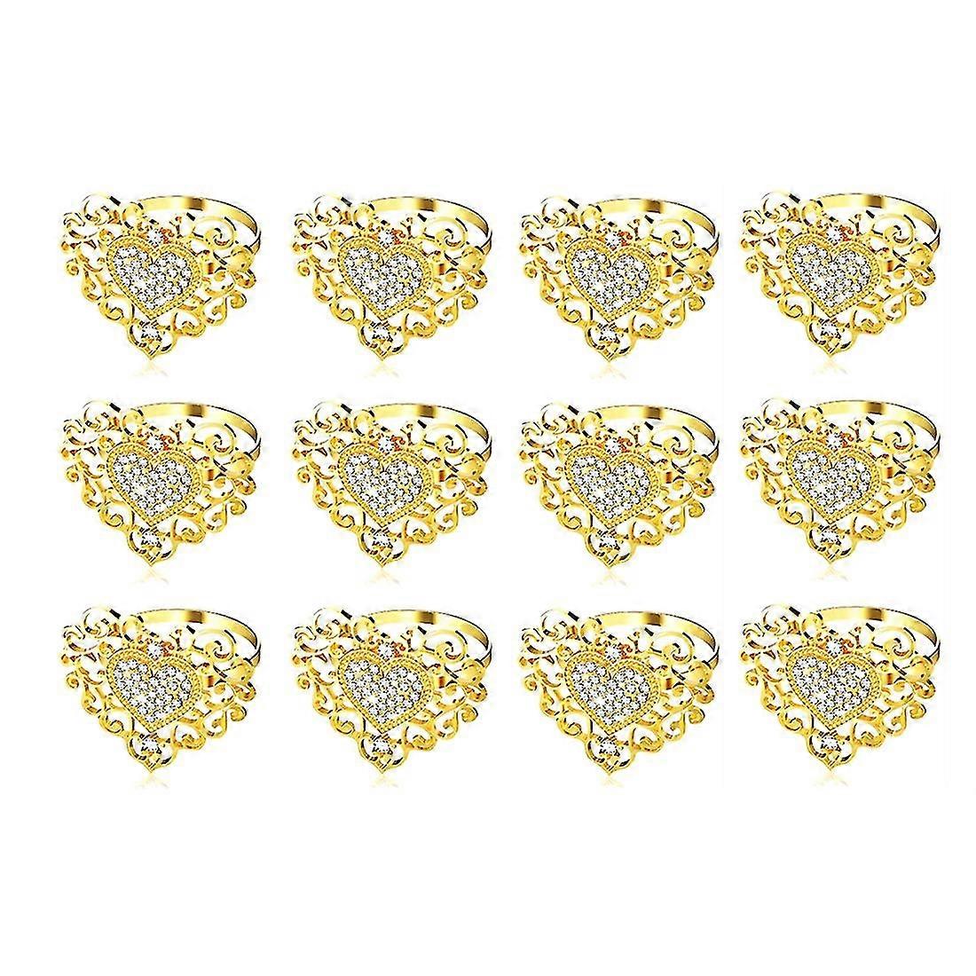 12 Piece Napkin Rings Holder Heart Napkin Ring Rhinestone Napkin Buckle For Valentine Wedding Holid