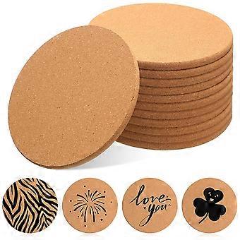 12 Pcs Round 6in Absorbent Cork Coasters Wooden 0.3 Inch Thick
