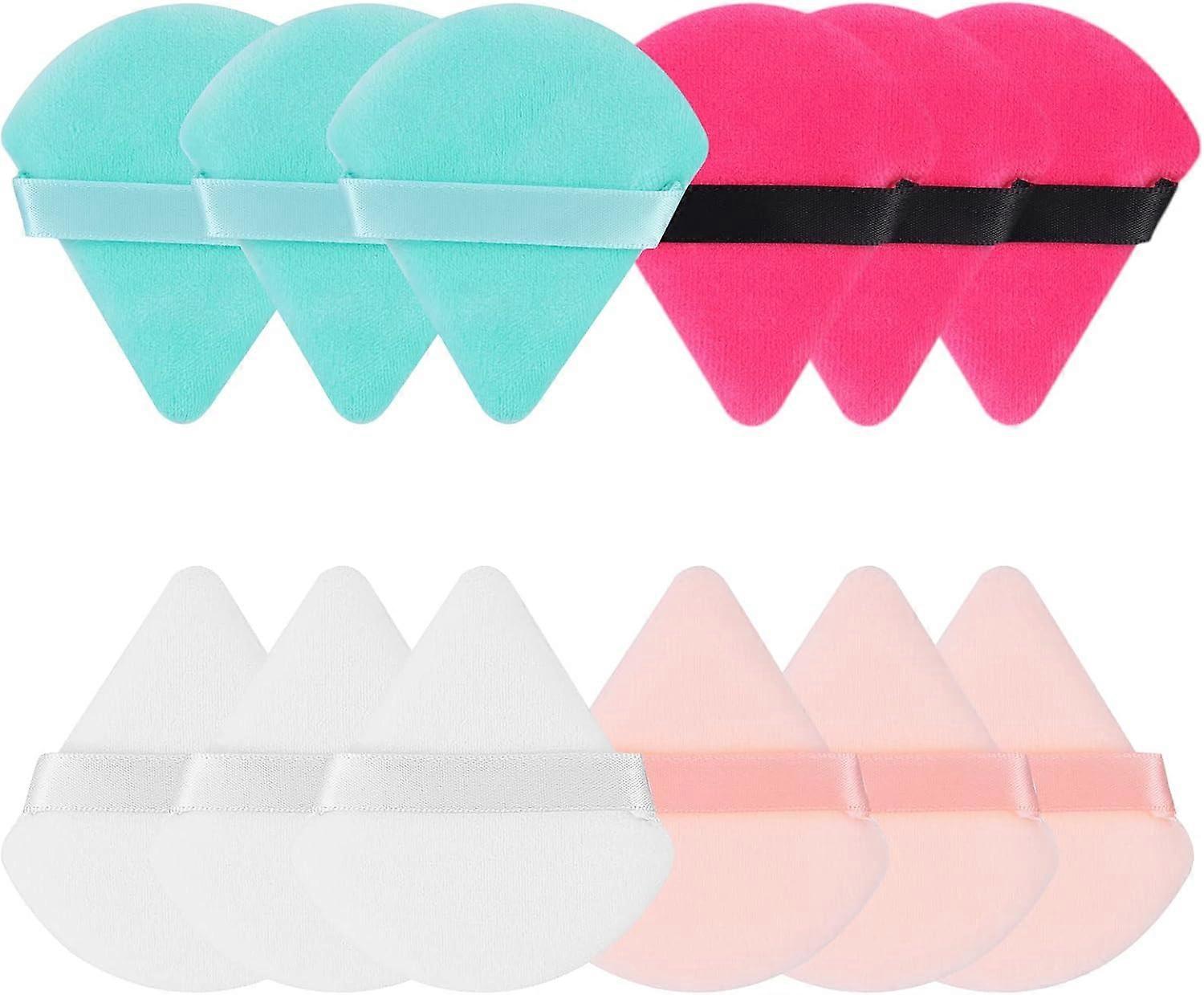 12 pcs Triangle Powder Puffs, 4 Colors Makeup Puff for Loose Powder Soft Velvet
