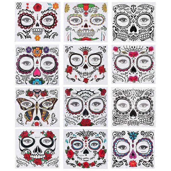 12Pcs Halloween Facial Sticker Temporary Tattoos Sticker for Decor (Mixed Style)
