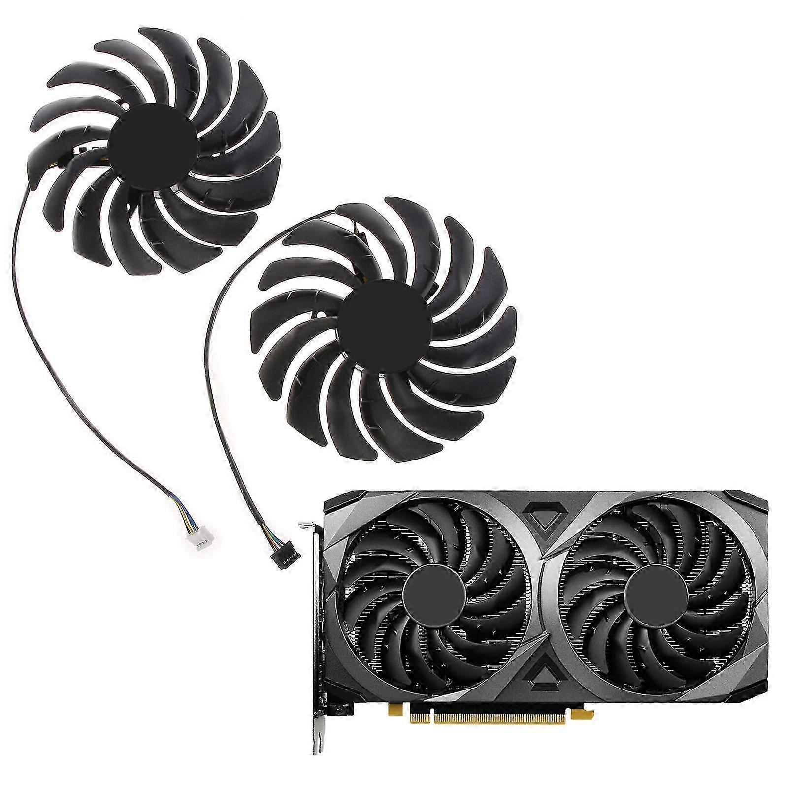 Description <br> Features: brand new and high quality <br> For following model cards, for MSI RTX 3070 3060 3060Ti VENTUS 2X OC Graphics Card Cooling. <br> for Extra USB port and Power switch design. Built-in dual-USB hub allows for connecting more USB devices. The packaged Cable is USB to USB connection. <br> High-quality multi-directional metal mesh provides your laptop with a wear-resisting and stable laptop carrying surface. <br> Ultra-portable slim, portable, and light weight allowing you to protect your investment wherever you go. <br> A quiet fan system designed for cooling receivers, amplifiers, DVRs, and other components. <br> <br> Specifications: Model: PLD10010S12HH <br> Voltage: DC 12V <br> Current: 0.40AMP <br> Type: 1PC black cable , 1PC white cable, 1Pair (optional) <br> Fan Dimension (L x W x H): approx. 95mm x 95mm x 13mm <br> Mounting holes distance: approx. 40mm x 40mm x 40mm (Center to Center) <br> Power Connector: 4-Pin Header <br> Applications: for MSI RTX 3070 3060 3060Ti VENTUS 2X OC Graphics Card <br> <br> Package Includes: A / B / C (optional) <br> A: 1PC x Black Cable Fan <br> B: 1PC x White Cable Fan <br> C: 1Pair x Fan <br> <br> note: Do not purchase according to the graphics card model when you buy a graphics card fan,because the same type of graphics card has a different fan,any question please feel free to contact me <br> This item is a video card fan replacement. Donfor t include Mounting screws, Heatsink orother. <br> Please measure the fan dimension and the mounting holes distance, and make sure it will fit your video card. <br>
