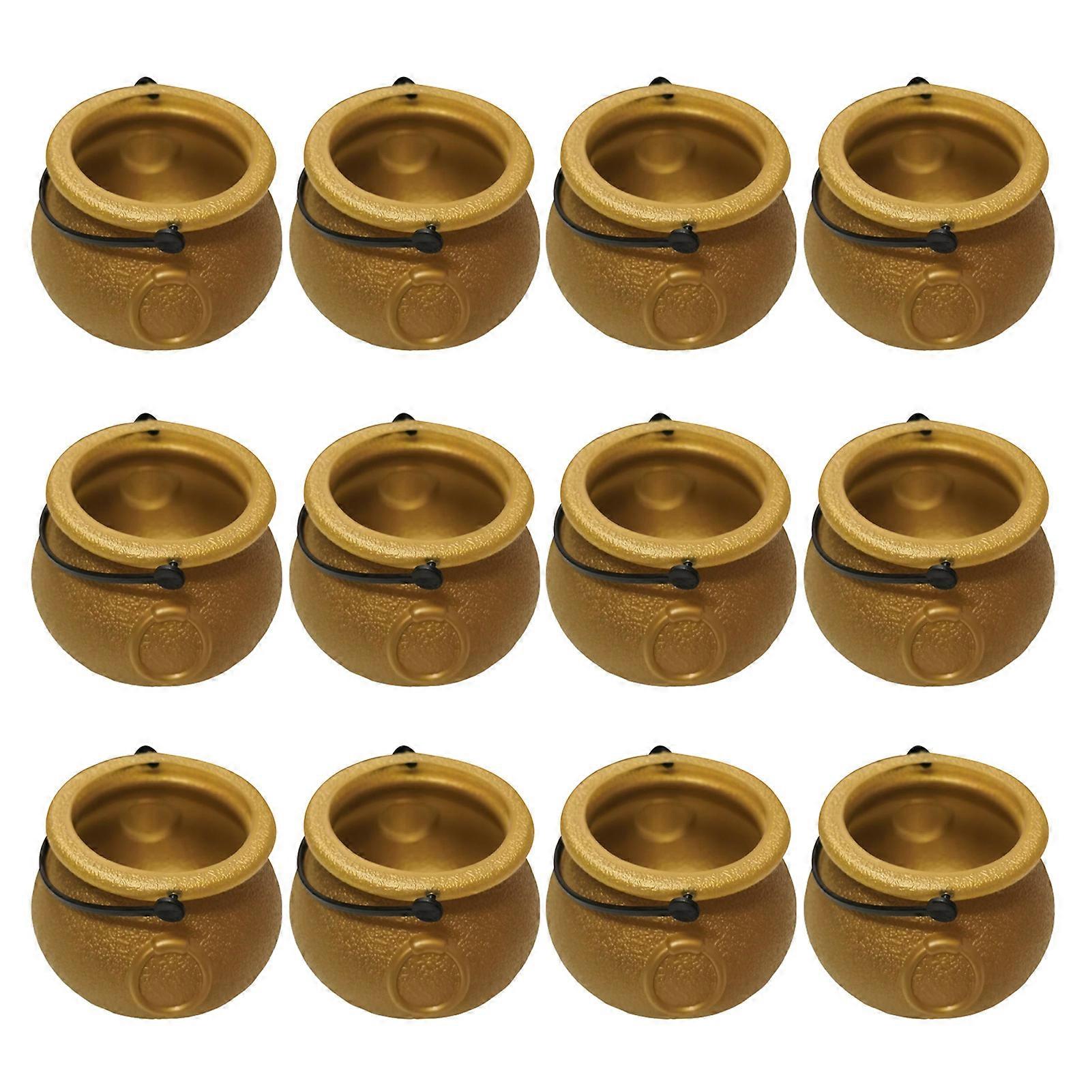 12Pcs Halloween Candy Buckets Black Plastic Witch Cauldron Kettle Halloween Pot Goody Holder for Party Favors Home Festival Decoration