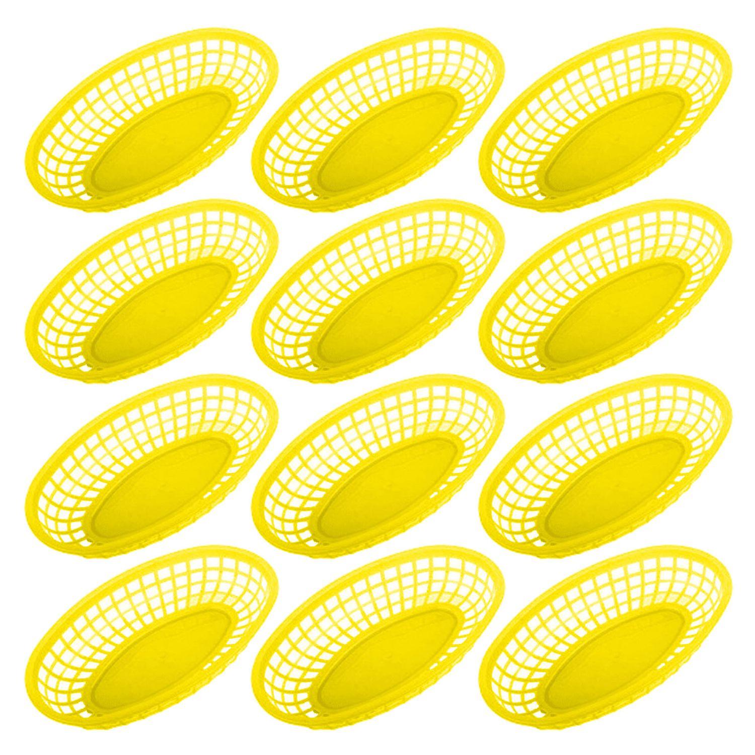 12Pcs Storage Basket Hollow Design Tableware Plastic Bread Fast Food Snack Plate for Home