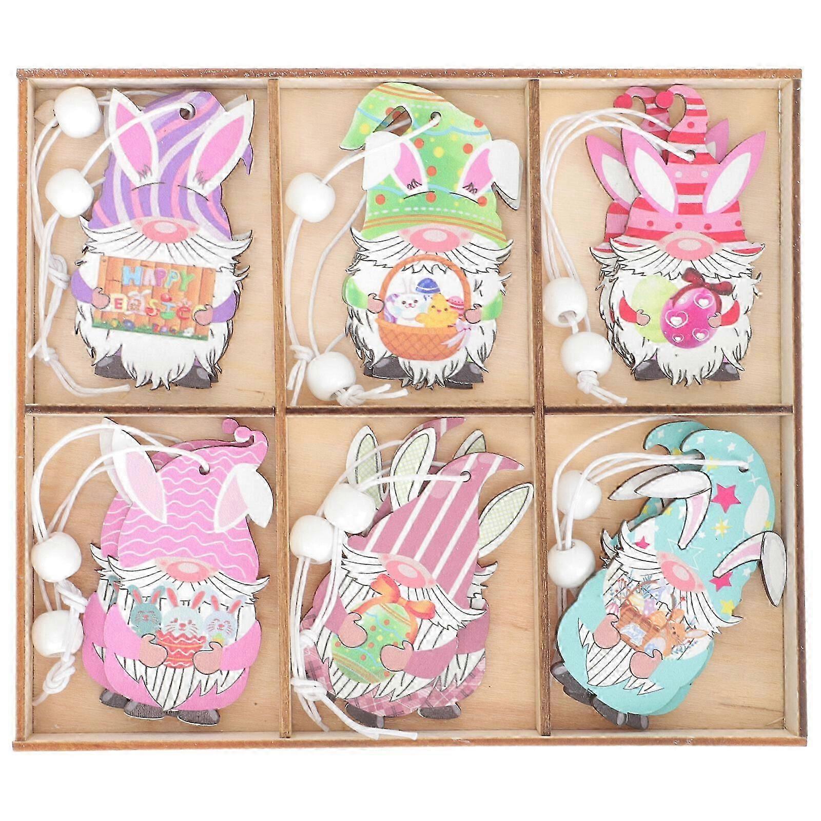 12pcs Easter Wooden Ornaments Easter Tree Hanging Wooden Rabbit Ornaments Crafts